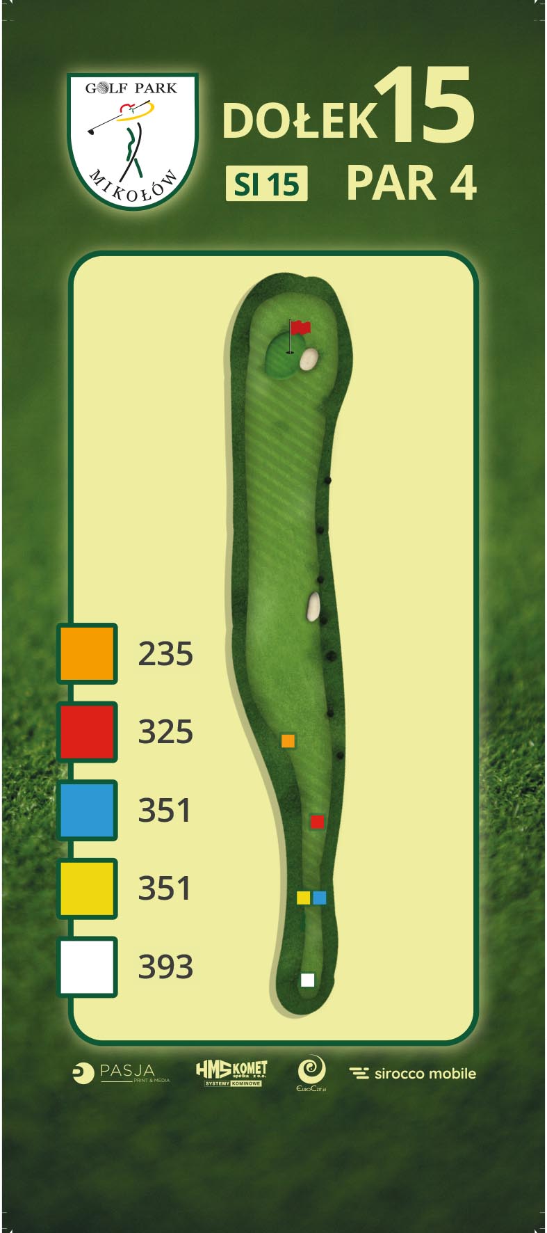 D15Kolejna płaska i prosta czteroparówka z małym bunkrem farway’owym na 180 m . Duży płaski green z bunkrem przy prawej krawędzi nie powinien sprawiać kłopotów.