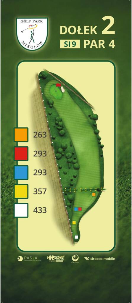 D2Pierwszy szeroki dogleg na polu, zagięty w lewo. Golfiści, którzy czują się mocni w uderzeniu driverem i chcą uzyskać krótki approach mogą zaryzykować zagranie nad drzewami. Wszyscy inni powinni zagrać bezpiecznie nad fairwayem celując w kierunku słupa średniego napięcia. Następnie będą potrzebowali dłuższego uderzenia, aby wejść na greenu. Należy pilnować kierunku aby nie skończyć się w bunkrze po jego prawej stronie.