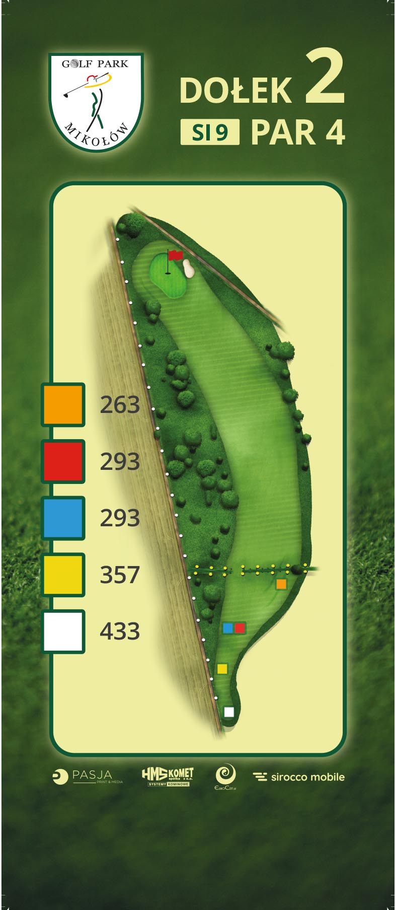 Wyniesiony green jest bardzo rozległy, dlatego warto być precyzyjnym, żeby mieć szansę na skompletowanie para. Po lewej stronie greenu i tuż za nim jest out of bounds. Najlepiej umieścić piłkę na środku lub nawet po prawej stronie fairwaya, dzięki temu podejście na green nie będzie zakłócone przez drzewka i bunkier. Green dość mały, ale prosty i równy z lekkim spadkiem na prawo i do tyłu.